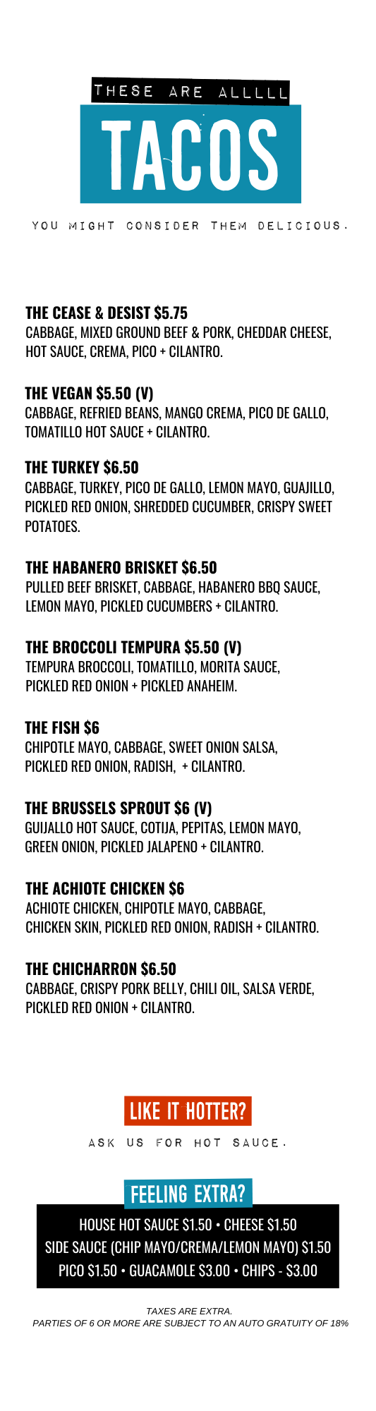 PARTIES OF 6 OR MORE ARE SUBJECT TO AN AUTO GRATUITY OF 18%
